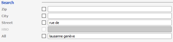 Ist bei der Eingabe die Bedeutung des Feldes nicht bekannt, so kann die Eingabe über eine Suchzeile erfolgen. In diese Suchzeile können Adresselemente völlig unqualifiziert eingegeben werden.