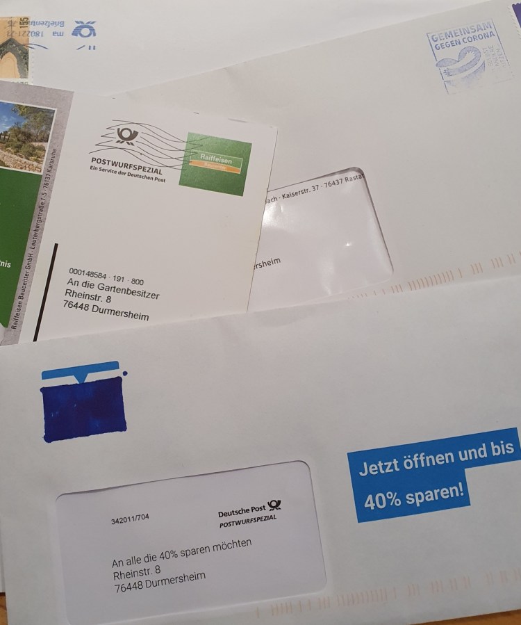 Werbesendungen sind bei vielen Personen unerwünscht und landen oft direkt im Altpapier. Insbesondere, wenn man diese als Postwurfsendung ohne Adresse aus dem Briefkasten holt. In Deutschland kann man diesen unadressierten Postwurfsendungen entgehen, indem man am eigenen Briefkasten gut sichtbar einen entsprechenden Hinweis anbringt. Meist sieht man am Briefkasten einen Aufkleber in der Art „Bitte keine Werbung einwerfen“. Dies wird in Deutschland bereits von über 25% der Haushalte praktiziert (Quelle „BDZV – Bundesverband Digitalpublisher und Zeitungsverleger e.V.“). Diese Haushalte werden als Werbeverweigerer bezeichnet. Rechtlich stützt sich dies in Deutschland auf das Gesetz gegen den unlauteren Wettbewerb.