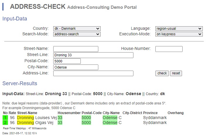 Address-Consulting erweitert die Länderzahl für den Address-Check. Die Demo beinhaltet jetzt auch den Address-Check auf der Basis von dänischen Referenzdaten. Die Demo erreichen Sie unter folgender Adresse: