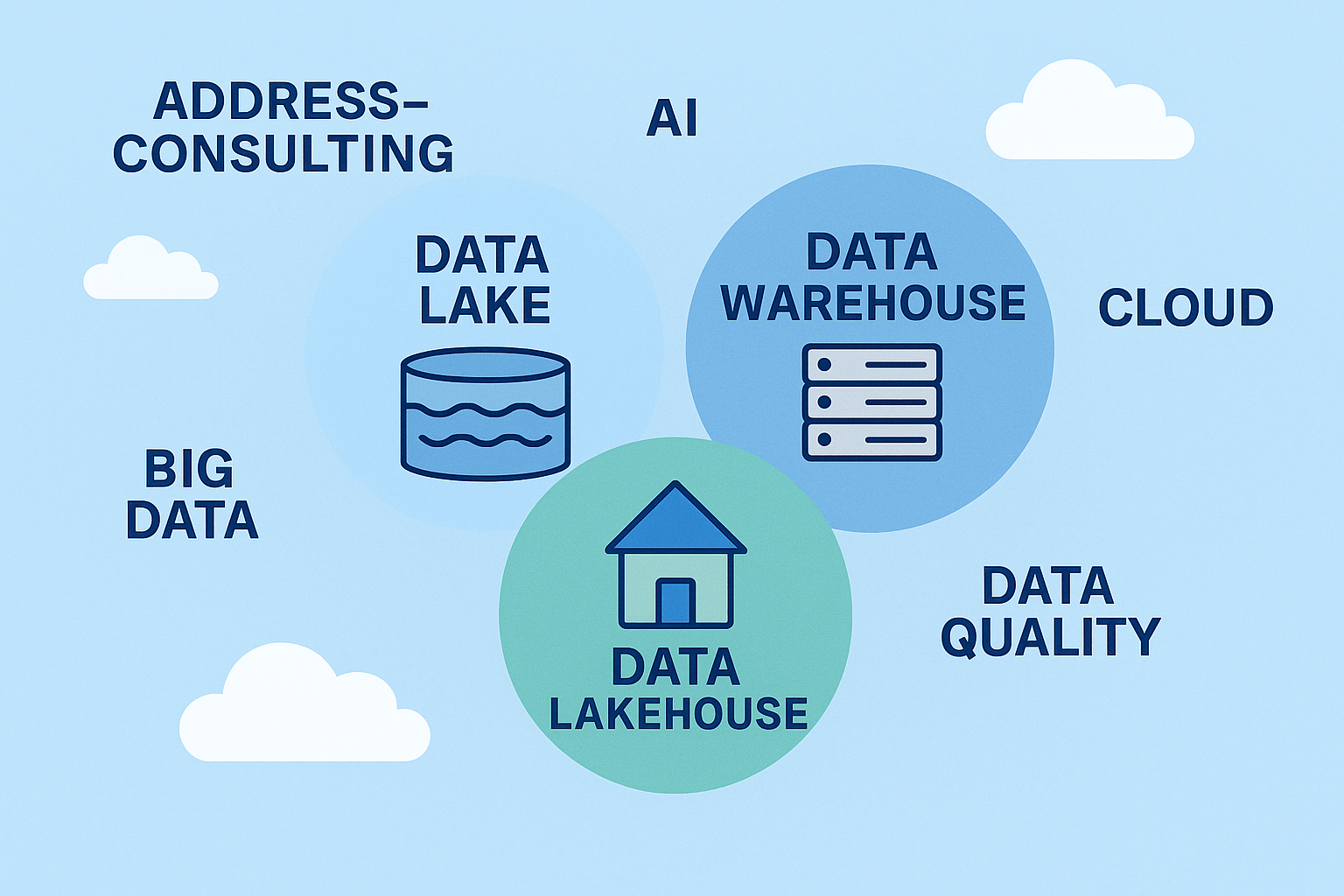 Wir bei Address-Consulting unterstützen Sie dabei, den Weg vom klassischen Warehouse hin zum modernen Lakehouse zu gestalten – für bessere Daten, schnellere Analysen und mehr Wert aus Information.